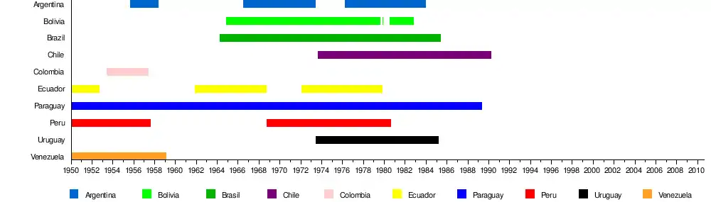 Linea de tiempo de las dictaduras en Sudamérica