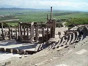 Al final de la tercera guerra púnica, Roma aplastó definitivamente Cartago y se instaló en los escombros de la ciudad en 146 a. C.[39] El fin de las guerras púnicas marcó el establecimiento de la provincia romana de África, de la cual Útica fue la primera capital.[39][50] Una primera tentativa de colonización por parte de los Graco con la creación de una Colonia Junonia Carthago abortó en 122 a. C.[51] y provocó la caída y muerte de su promotor, Cayo Sempronio Graco. En 44 a. C., Julio César decidió fundar una colonia romana, la Colonia Julia Carthago,[51] pero tuvieron que pasar algunas décadas para que César Augusto iniciara los trabajos de la ciudad,[52] la cual fue más tarde capital de la provincia. La ornamentación monumental de la ciudad desempeñó un rol importante en la romanización de la región,[53] esta "Roma africana" se difundió en el rico tejido urbano del territorio de la actual Túnez.