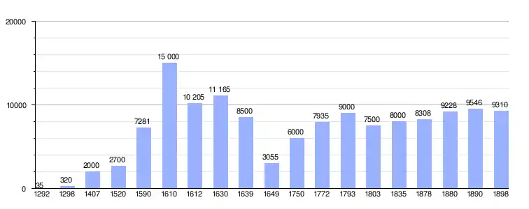 | Gráfica de evolución demográfica de Historia de Villarrobledo entre 1292 y 1898 |