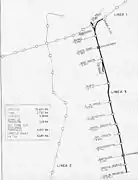 - Línea A: desde Conchalí hasta Lo Benítez (actual El Bosque), por las avenidas Vivaceta, Norte-Sur, la Gran Avenida y Los Morros.