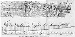 Además, se planteaba la posibilidad de empalmar a futuro con el Ferrocarril de Circunvalación en las cercanías de la estación San Diego, el ferrocarril Longitudinal y el ferrocarril a Valparaíso, ubicados en la Estación Mapocho. También, se planteaba la posibilidad de una tercera línea, entre la Estación Mapocho y la calle Robles por el eje de la avenida San Pablo a lo largo de 4 km. El proyecto, sin embargo, no tuvo gran impacto: si bien el decreto 905 del 25 de mayo de 1944 aprobó los planos para línea norte-sur y en octubre de 1946 se inició la petición de propuestas públicas para su construcción, este proceso no se completó y el proyecto quedó archivado.[25][26][27]