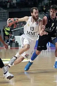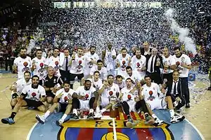 En la temporada siguiente se reforzó con los fichajes de Tremmell Darden, Dontaye Draper y Marcus Slaughter, coincidiendo con la marcha de Ante Tomić y el equipo conquistó la segunda Supercopa de España del club de nuevo frente al F. C. Barcelona, además de conquistar su 31.º título de Liga con una gran actuación de Felipe Reyes, MVP de la final, y con un registro de 38 victorias en 44 partidos. En Europa, consiguió tras 18 años llegar a la final four de la Euroliga. En ella venció una vez más a los catalanes en las semifinales antes de perder el título frente al Olympiakós Piraeus por 100-88. Las temporadas siguientes el club siguió aumentando su palmarés nacional con otra Supercopa, otra Copa del Rey, consagrándose jugadores como Llull o Mirotić, y llegar a una nueva final de la Euroliga,[71] la 16.ª de su historia. Del mismo modo que la anterior, se escapó en el partido decisivo tras caer por 98-86 frente al histórico rival del Maccabi Tel Aviv Basketball Club.[72]