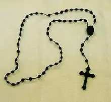 Durante la Edad Media , la evidencia sugiere que tanto el Padre Nuestro como el Ave María se recitaban con cuentas de oración. En el siglo XIII en París , existían cuatro gremios comerciales de fabricantes de cuentas de oración, a quienes se les conocía como paternósteros , y las cuentas se denominaban paternósters , lo que sugiere un vínculo continuo entre el Padre Nuestro ( Pater noster en latín) y la oración del rosario.[10]