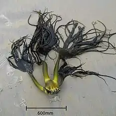 Se ha encontrado que como parte de la adaptación al entorno terrestre, se desarrolló una simbiosis micorriza con hongos glomales[20] desde hace 460 millones de años[21] tal como se observa en briofitas primitivas como las hepáticas, lo que facilitó el aprovechamiento de nutrientes y minerales, así como resistencia al estrés mineral del suelo.[22]