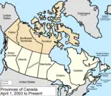 | 1 de abril de 1999 | (3.º territorio) | Se crea el territorio de Nunavut a partir de los Territorios del Noroeste. Los distritos provisionales ya no son más las áreas administrativas de los Territorios del Noroeste.[28] | ![]() |