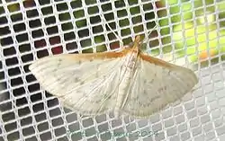 Los adultos son de color blanco, con dos arcos marrones irregulares a través de cada ala.[2] Las larvas se alimentan de especies de hibisco, Gomphocarpus y Asclepias (incluyendo Asclepias curassavica).[3]
