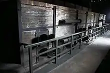 El Campo de exterminio de Bełżec, establecido cerca de la estación de ferrocarril de Bełżec en la Distrito de Lublin, comenzó a funcionar oficialmente el 17 de marzo de 1942, con tres cámaras de gas provisionales. Más tarde, fueron sustituidas por seis de ladrillo y mortero, lo que permitió a la instalación tratar a más de 1.000 víctimas a la vez.[129] Al menos 434.500 judíos fueron asesinados allí. Sin embargo, la falta de supervivientes verificados hace que este campo sea poco conocido.[130] Los cuerpos de los muertos, enterrados en fosas comunes, se hinchaban con el calor como consecuencia de la putrefacción que hacía que la tierra se partiera, lo que se solucionó con la introducción de fosas crematorias en octubre de 1942.[131]