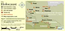 El Holocausto en Ucrania fue la persecución, deportación y exterminio sistemático de 1,4[5] -1,6 millones de judíos de Ucrania,[6] por parte de la Alemania nazi, sus aliados y colaboradores entre los años 1941 y 1944; e implementado por el Generalplan Ost y la "Solución final de la cuestión Judía".