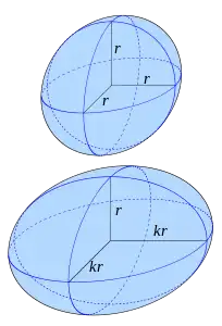 - La elipse de semieje mayor y de semieje menor es la imagen de un círculo de radio mediante una afinidad de base el eje mayor, dirección del eje menor y relación .