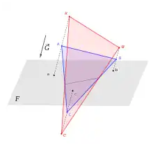 Dado un espacio afín asociado con , un subespacio afín asociado con y una dirección adicional de , la afinidad de la base o en , de dirección , y proporción es la aplicación definida de la siguiente manera: