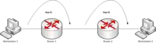 Cada vez que un router recibe un paquete, lo modifica, disminuyendo el tiempo de vida (TTL). El router descarta los paquetes recibidos con un valor de TTL cero, Esto evita que los paquetes reboten sin cesar por la red en caso de errores de encaminamiento. Los routers son capaces de gestionar el rencuento de saltos, pero otros tipos de dispositivos de red (p. ej. concentrador y puentes de red) no lo hacen.