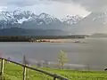 La orilla norte tiene una vista espectacular de los Alpes de Algovia.