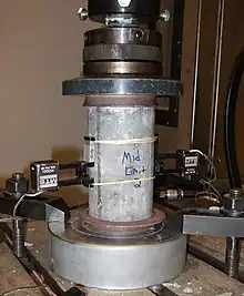 La resistencia del hormigón a compresión se obtiene en ensayos de rotura por compresión de probetas cilíndricas normalizadas realizados a los 28 días de edad y fabricadas con las mismas amasadas puestas en obra.[21] La Instrucción española (EHE) recomienda utilizar la siguiente serie de resistencias características a compresión a 28 días (medidas en Newton/mm²): 20; 25; 30, 35; 40; 45 y 50.[21] Por ello, las plantas de fabricación de hormigón suministran habitualmente hormigones que garantizan estas resistencias.