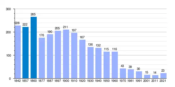 | Gráfica de evolución demográfica de Hornillos de Cameros[2] entre 1842 y 2021 |