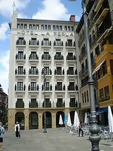 El hotel se sitúa en la Plaza del Castillo, en el corazón del Casco Antiguo de Pamplona y uno de sus laterales da a la calle Estafeta, una de las vías recorridas por el encierro celebrado en las fiestas de San Fermín. Esta estratégica localización es una de las razones de su popularidad.[1]