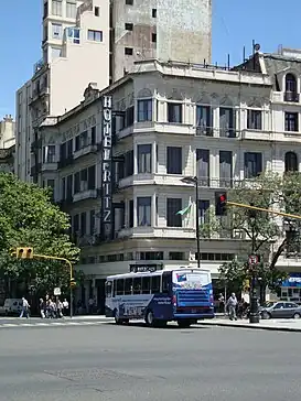 Fue diseñado por el ingeniero Juan Antonio Buschiazzo en 1893 y construido por José Ventafridda, encargado por el estanciero Alfonso Bernasconi, propietario además de otro edificio sobre la misma Avenida, que sería inaugurada oficialmente en 1894. Se trata por lo tanto de una de las construcciones más antiguas de esta arteria de Buenos Aires, y originalmente estuvo destinado a viviendas de renta y comercios en la planta baja. En la primera mitad del siglo XX, estuvo ocupado principalmente por consultorios de médicos y dentistas, pero décadas más tarde se transformó en hotel, como ocurrió con numerosos edificios en la misma avenida.