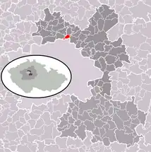 Se encuentra ubicada al este de la región y de Praga, a poca distancia al sur del curso alto del río Elba.[1]