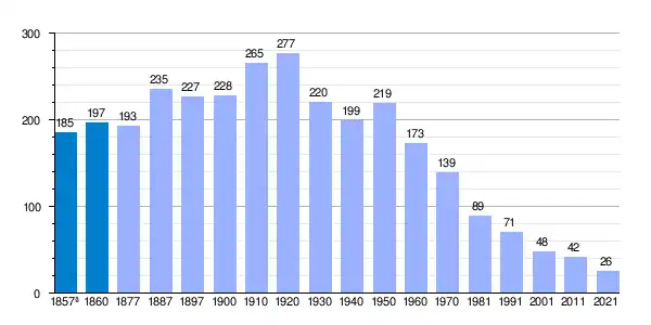 | Gráfica de evolución demográfica de Hoyos de Miguel Muñoz[5] entre 1857ª y 2021 |