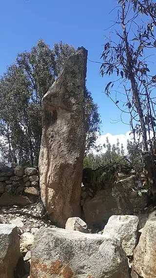 El sitio está conformado por una plataforma ceremonial megalítica de planta ovalada de 42 metros de diámetro enmarcada por un muro perimetral.[5] En el centro de la misma se ubica una gran piedra parada o huanca de 5 metros de altura.[4] Se han hallado restos de fogones y ofrendas cerámicas del Horizonte Temprano y del Horizonte Medio que evidencia el uso ritual del lugar.[6]