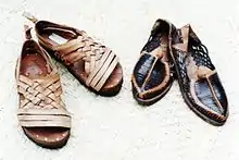 Huarache, sandalia mexicana, también presente en otros países hispanoamericanos. El término "huarache" proviene de la voz "kwarachi" de la lengua purépecha o tarasco.