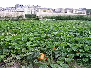 Durante la época de Luis XIV, el huerto del rey requería una gran organización. Un colectivo de treinta jardineros experimentados debía atender las parcelas del jardín, los invernaderos y los doce mil árboles. El rey lo mostraba a sus invitados ilustres, como el embajador de Siam y el Dux de Venecia, para que admiraran las maravillas de su jardín. También envió muestras de su variedad de pera favorita, Bon Chrétien, como regalo a otros jefes de Estado.[9] Las distintas clases de verduras servidas eran un tema de discusión obligatorio en las cenas de Versalles. Como escribió Madame de Sévigné, «La moda de los guisantes continúa; la impaciencia a la espera de comerlos, el hecho de haberlos comido, y el placer de comerlos son los tres temas que nuestros príncipes han estado discutiendo durante los últimos cuatro días».[10]