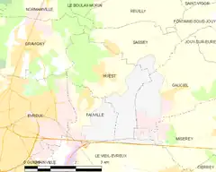 - Situación de Huest en un mapa de Francia y de comunas limítrofes (en francés)