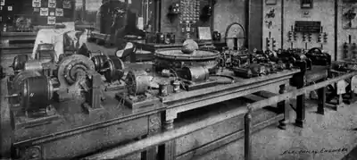 La Figura 297 (ver foto del artículo) muestra una vista de parte de las exhibiciones que contienen el aparato motor. Entre estos se muestra en A un gran anillo destinado a exhibir los fenómenos del campo magnético giratorio. El campo producido fue muy poderoso y exhibió efectos llamativos, como bolas de cobre giratorias y huevos y cuerpos de diversas formas a distancias considerables y grandes velocidades. Este anillo estaba enrollado para circuitos bifásicos, y el bobinado estaba tan distribuido que se obtuvo un campo prácticamente uniforme. Este anillo fue preparado para la exposición del Sr. Tesla por el Sr. C.F. Scott, electricista de Westinghouse Electric and Manufacturing Company.[2]