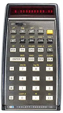La calculadora Hewlett-Packard HP-45 (lanzada en 1973) contiene un cronómetro no documentado al que se accede mediante una secuencia de teclas.[34]