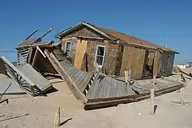 El huracán Isabel comenzó a afectar a Carolina del Norte unas 15 horas antes de que llegara a tierra. Al tocar tierra a lo largo de los Outer Banks, el huracán produjo fuertes olas de 15 a 25 pies (4,5 a 6 m) de altura y una marea de tormenta de aproximadamente 6 a 8 pies (1,8 a 2,4 m). Waters alcanzó una altura de 7,15 pies (2,18 m) en Hatteras.[36] Las mareas de tormenta a lo largo de la costa alcanzaron un máximo de 7,7 pies (2,3 m) en Cabo Hatteras, aunque el total podría ser mayor allí debido a que el mareógrafo destruyó el mareógrafo. El oleaje y las olas crearon una nueva entrada al lavar una porción de Hatteras Island entre Hatteras y Frisco. Extraoficialmente llamada Isabel Inlet, la fractura era de 2000 pies (600 m) de ancho y 15 pies (5 m) de profundidad, y consistía en tres canales distintos. La formación de la entrada destruyó una parte de la autopista 12 de Carolina del Norte.[37] y también lavó tres casas, dunas, líneas eléctricas y tuberías de servicios públicos.[38] La nueva entrada destruyó todas las conexiones de servicios a Hatteras Village, aislando a los residentes allí. La marea de tormenta y las olas de Isabel también resultaron en una brecha entre Hatteras y Hatteras Inlet. La brecha, que casi se convirtió en una ensenada, se formó a partir del flujo de agua del océano a través de la isla, aunque no era lo suficientemente profundo para un flujo de agua constante. La violación ocurrió en un área sin carreteras ni casas, y tuvo poco impacto en los residentes de Hatteras.