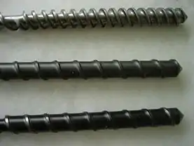 Detalle de la parte final de husillos de laboratorio utilizados para extrusión de termoplásticos.