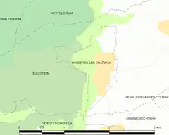- Ubicación de Husseren-les-Châteaux y de las comunas limítrofes en el mapa de Francia (enlace roto disponible en Internet Archive; véase el historial, la primera versión y la última).