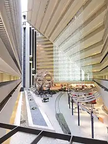El crítico de arquitectura del San Francisco Chronicle, John King, ha descrito el edificio de 1973 como un «templo del urbanismo hermético» en un estilo de «ciencia ficción autónoma» que en 2016 se había vuelto «anticuado», aunque sigue siendo «visualmente deslumbrante, de una manera futurista».[1] El Regency Club Lounge fue una vez el Equinox, un restaurante giratorio en la azotea, pero ahora es un club de élite estacionario para ciertos huéspedes del hotel que ofrece vistas de 360 grados de la ciudad y la bahía. El atrio tiene el récord mundial Guinness (a partir de 2012) para el vestíbulo de hotel más grande, con una longitud de 107 metros, un ancho de 49 metros y una altura de 52 metros (15 pisos).[2]