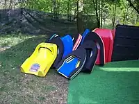 La embarcación es corta confeccionada en plástico de alto impacto, con quilla, y dos soportes incorporados al mismo para que el navegante se aferre a la misma y poder ejercer control sobre la misma, posee una envergadura de 15 dm aproximadamente, ya que el navegante de la misma lleva sus piernas sobre el agua, las cuales harán las veces de timón, y de impulsor.[1][2][3]