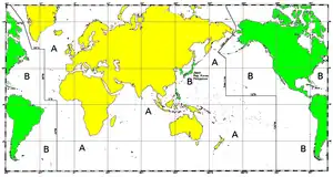 Existen dos sistemas a lo largo del mundo, el sistema A aplicado en Europa, África, Oceanía y Asia, excluyendo Japón, Corea y Filipinas. El sistema B aplicado en América del Sur, Central y Norte además de los tres países asiáticos antes mencionados, como indica el mapa de la figura.
