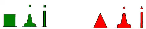 En ambos casos la figura geométrica o marca de tope que corona las boyas - balizas es:
