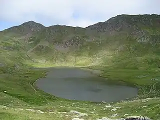 ![]() Panorámica del ibón de Escalar, viniendo del ibón de Astún o Truchas. | ||