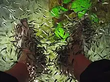 La ictioterapia (compuesto por el prefijo procedente del gr. ichtýs, pez. y terapia: tratamiento de una enfermedad)[1] se refiere a la terapia de limpieza en los pies con el uso de peces de origen turcos llamados Garra rufa o también llamados pez doctor o doctor fish. Es equivalente a un peeling o exfoliación natural, pero aplicado a los pies. Es un método muy sencillo que consiste en sumergir los pies en un recipiente de agua o pecera lleno de peces garra rufa, estos peces prácticamente succionan las células muertas de los pies, provocando literalmente un cambio de piel, ya que se utilizan peces pequeños para tal labor, de no más de 5 centímetros.