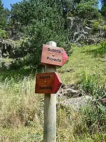 Señal bilingüe en aragonés y castellano situada en Benasque.