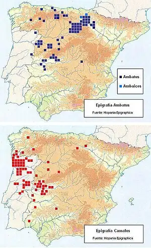 Las inscripciones se han encontrado en Arroyo de la Luz (Extremadura, España), Cabeço das Fráguas (Guarda, Portugal), Lamas de Moledo (Viseo, Portugal) y Arronches (Alto Alentejo, Portugal).