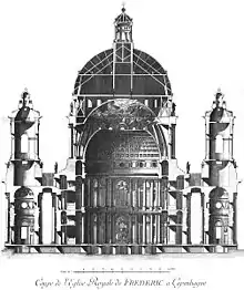 Nicolai Eigtved, arquitecto de la corte danesa, obtuvo la encomienda del diseño de la iglesia y la dirección del proyecto de la construcción. Se conocen cinco planos de Eigtved entre 1750 y 1754. La comisión encargada de la construcción no estuvo totalmente de acuerdo con los proyectos de Eigtved, que eran de un estilo rococó arcaico. Por ello se aceptaron propuestas de otros arquitectos, como los franceses Ange-Jacques Gabriel y Nicolas-Henri Jardin, el danés Laurids de Thurah y el dano-germano Georg David Anthon.
