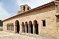 Cuenta con una espadaña de dos vanos[7] y con un atrio porticado,[8] que se extiende por las partes sur y oeste del edificio.[4] El interior de la iglesia, tras las reformas de la Edad Moderna, no es destacable.[6][2]