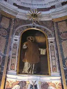 - Brazo izquierdo o sur: Capilla de Sant'Ignazio di Loyola. Sala dedicada a San Ignacio de Loyola con tres cuadros que representan al fundador de la Compañía de Jesús en medio de decoraciones en mármoles mixtos.