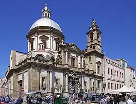 - La obra terminó en 1710 y, como se puede leer en la placa colocada en el lado derecho de la entrada, el 24 de noviembre de 1711 fue consagrada al culto por Bartolomeo Castelli de Palermo, obispo de Mazara del Vallo. En cambio, algunos documentos afirman que los escultores y marmolistas trabajaron en ella hasta 1743, reemplazando las decoraciones de estuco anteriores. La iglesia, clara representación de las producciones barrocas en Sicilia, está ubicada en el distrito de Albergheria, en el lugar anteriormente ocupado por un número considerable de edificios, demolidos para dar lugar a la construcción de la casa de la Tercera Prueba de la Orden de los Jesuitas (que existió hasta cerca de 1960), llamada así porque en ella los jóvenes jesuitas hacían voto de fidelidad al Papa.