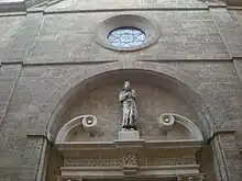 Es una iglesia barroca que muestra la influencia del clasicismo italiano, visible en la sencilla decoración de la fachada. La planta es de nave única con capillas laterales.