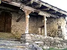 De los dos pórticos que tiene la iglesia, el que ocupa el emplazamiento original es el del norte, que sirve de cobijo a la puerta; consiste en realidad en dos porches adosados con un banco corrido de piedra y cubierta de vigas de madera y losas de pizarra. El segundo porche, a los pies del templo, en su lado oeste, fue añadido siglos después.[3]