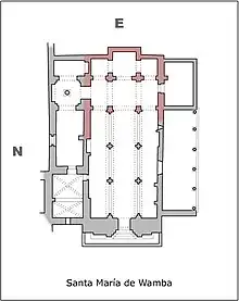 Su forma era la de un rectángulo de 18 metros de largo por 12 de ancho, dividido en nueve zonas mediante arcos de herradura sobre pilares, al que se adosa una cabecera, de la misma anchura que el resto de la iglesia, formada por tres ábsides rectangulares, sobresaliendo en el testero el central, que es de mayor tamaño que los laterales. A diferencia de San Cebrián de Mazote, la forma interior de los tres ábsides es rectangular.