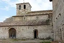 La iglesia es románica, del siglo XII, pero el crucero junto con las capillas de la cabecera son de época mozárabe del siglo X[4]. Está formada por tres naves y las capillas de Doña Urraca y del Osario, que recibe este nombre porque está decorada con cráneos y huesos humanos.