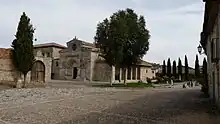 Al norte de la iglesia, en el lugar donde estuvo el claustro del monasterio, se halla un gran patio. A él se abren varias dependencias, como el baptisterio, la capilla de Doña Urraca y el osario.[18] En el osario se conservan más de 3000 calaveras de monjes, parte de los esqueletos depositados a lo largo de los siglos XIII al XVIII. En una de sus paredes se puede leer el siguiente epitafio:
