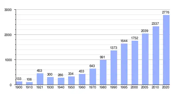 En 2020 registró una población de 2776 personas, lo que corresponde al 2.41 % de la población municipal.[7] De los cuales 1596 son hombres y 1681 son mujeres.[7]