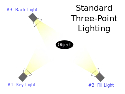Típico esquema de iluminación a tres puntos.